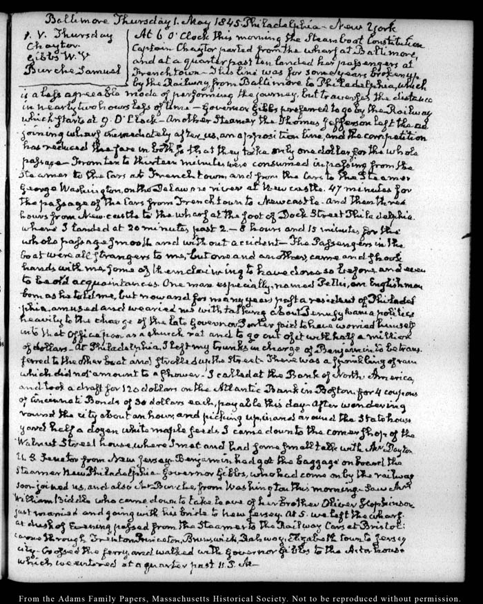 View full, authoritative transcriptions with page images of the diaries at John Quincy Adams Digital Diary part of the Primary Source Cooperative at the MHS.