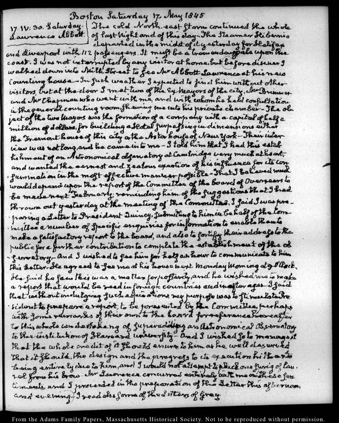 View full, authoritative transcriptions with page images of the diaries at John Quincy Adams Digital Diary part of the Primary Source Cooperative at the MHS.