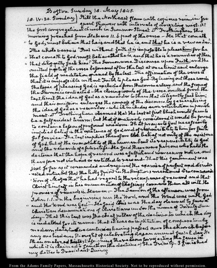 View full, authoritative transcriptions with page images of the diaries at John Quincy Adams Digital Diary part of the Primary Source Cooperative at the MHS.