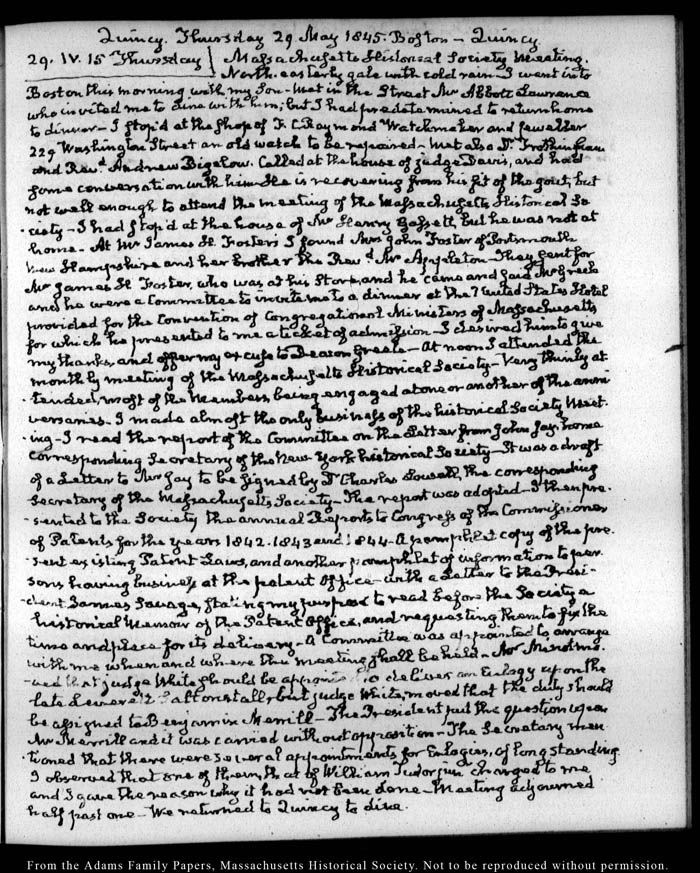 View full, authoritative transcriptions with page images of the diaries at John Quincy Adams Digital Diary part of the Primary Source Cooperative at the MHS.