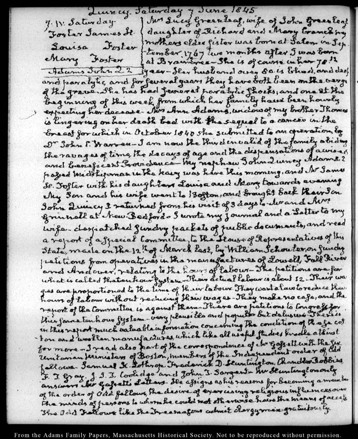 View full, authoritative transcriptions with page images of the diaries at John Quincy Adams Digital Diary part of the Primary Source Cooperative at the MHS.