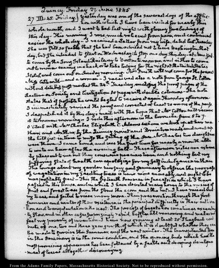 View full, authoritative transcriptions with page images of the diaries at John Quincy Adams Digital Diary part of the Primary Source Cooperative at the MHS.