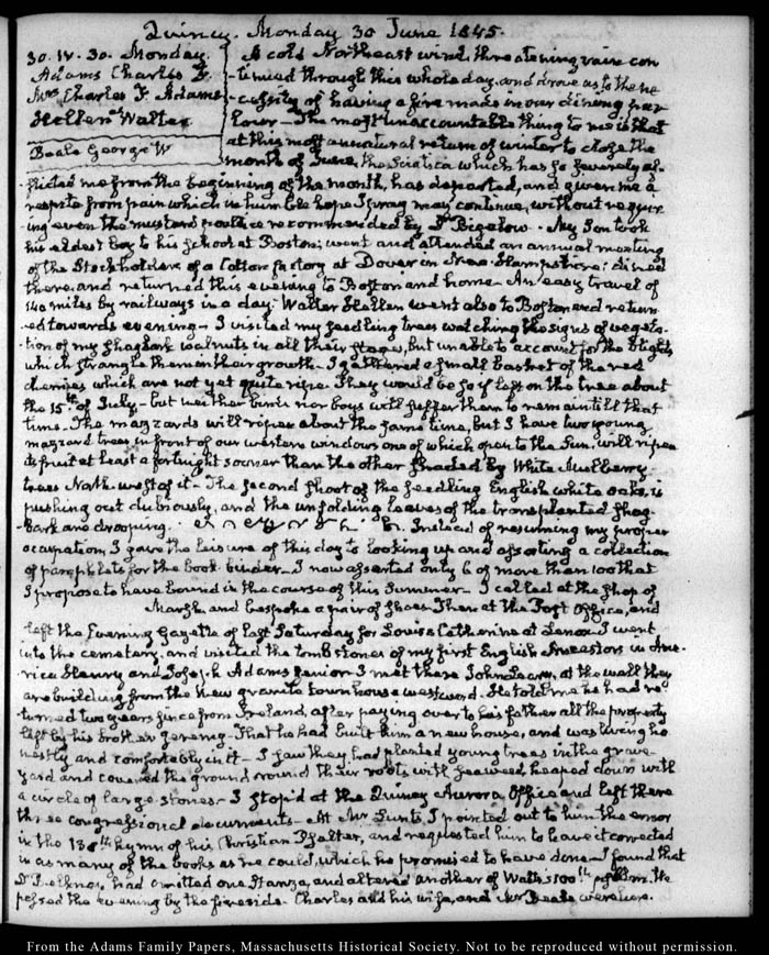 View full, authoritative transcriptions with page images of the diaries at John Quincy Adams Digital Diary part of the Primary Source Cooperative at the MHS.