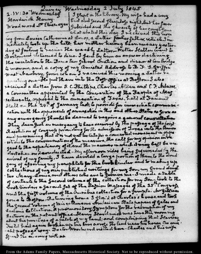 View full, authoritative transcriptions with page images of the diaries at John Quincy Adams Digital Diary part of the Primary Source Cooperative at the MHS.