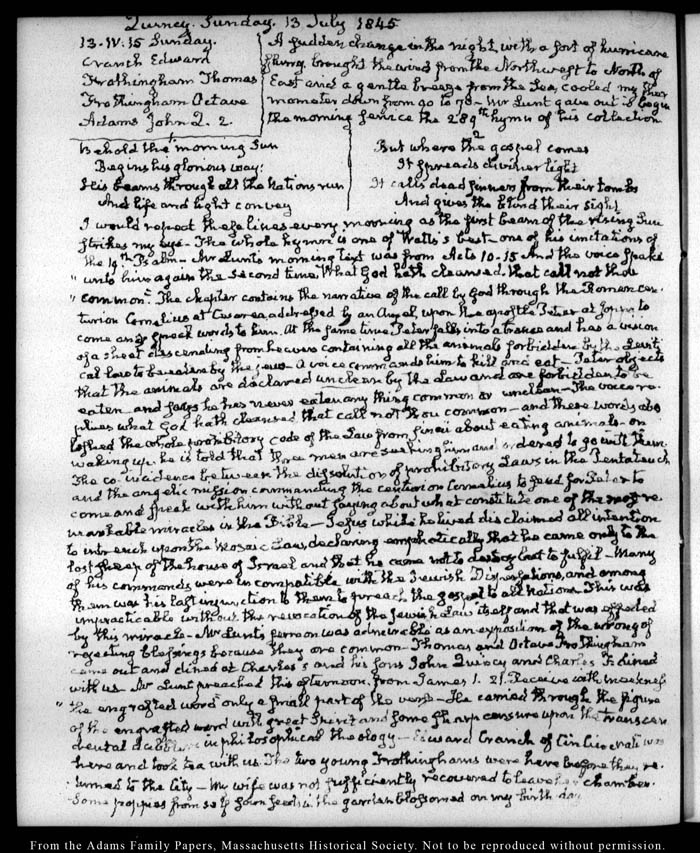 View full, authoritative transcriptions with page images of the diaries at John Quincy Adams Digital Diary part of the Primary Source Cooperative at the MHS.