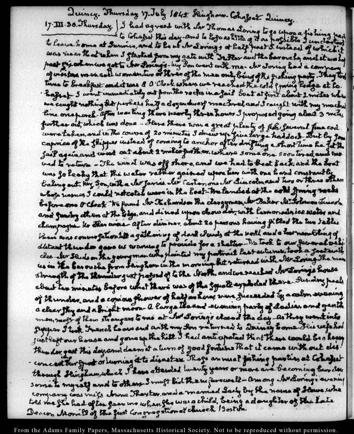 View full, authoritative transcriptions with page images of the diaries at John Quincy Adams Digital Diary part of the Primary Source Cooperative at the MHS.