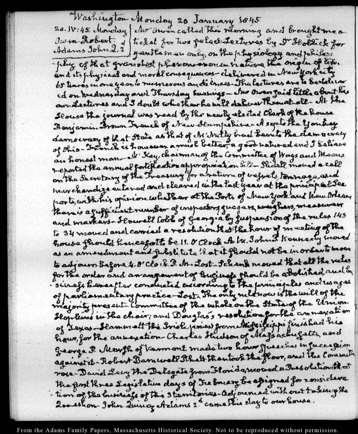 John Quincy Adams diary 45, 1 January 1845 - 10 August 1846, page 20