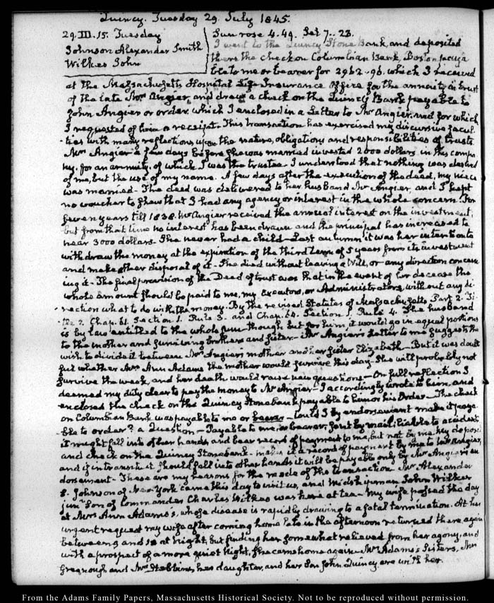 View full, authoritative transcriptions with page images of the diaries at John Quincy Adams Digital Diary part of the Primary Source Cooperative at the MHS.