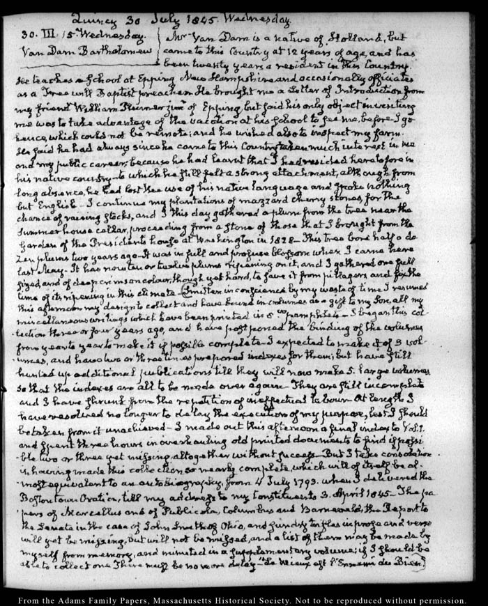 View full, authoritative transcriptions with page images of the diaries at John Quincy Adams Digital Diary part of the Primary Source Cooperative at the MHS.
