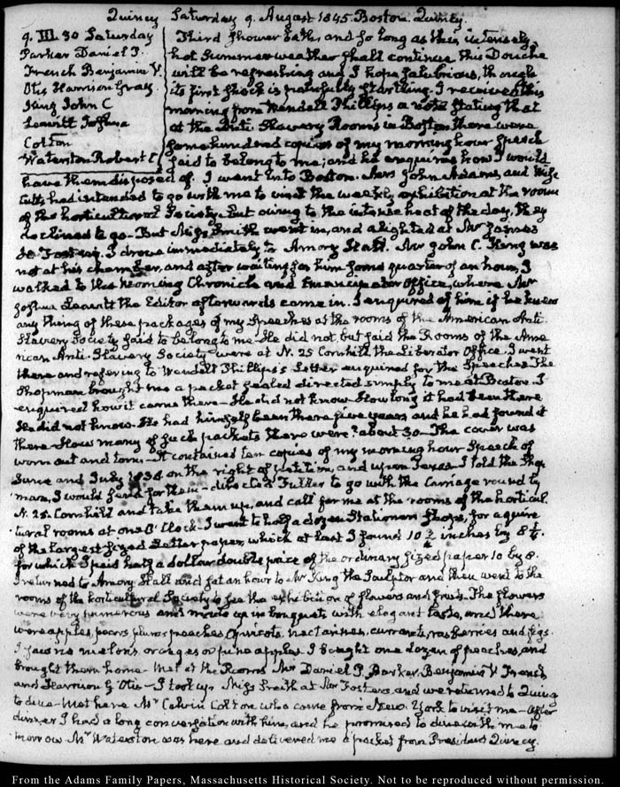 View full, authoritative transcriptions with page images of the diaries at John Quincy Adams Digital Diary part of the Primary Source Cooperative at the MHS.