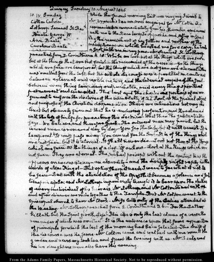 View full, authoritative transcriptions with page images of the diaries at John Quincy Adams Digital Diary part of the Primary Source Cooperative at the MHS.
