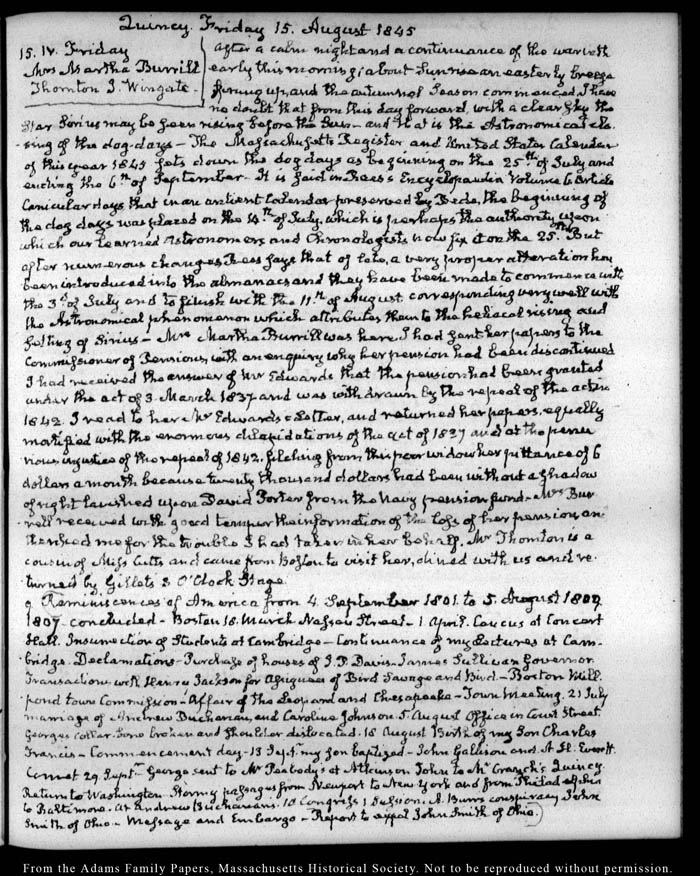 This is our legacy JQA diaries website and allows researchers to view the physical diaries page-by-page.