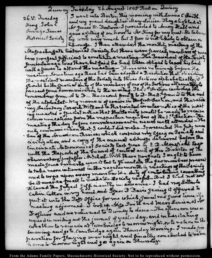 This is our legacy JQA diaries website and allows researchers to view the physical diaries page-by-page.