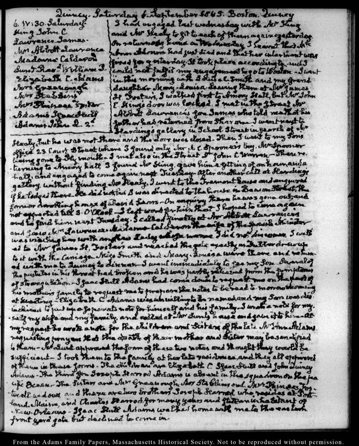View full, authoritative transcriptions with page images of the diaries at John Quincy Adams Digital Diary part of the Primary Source Cooperative at the MHS.