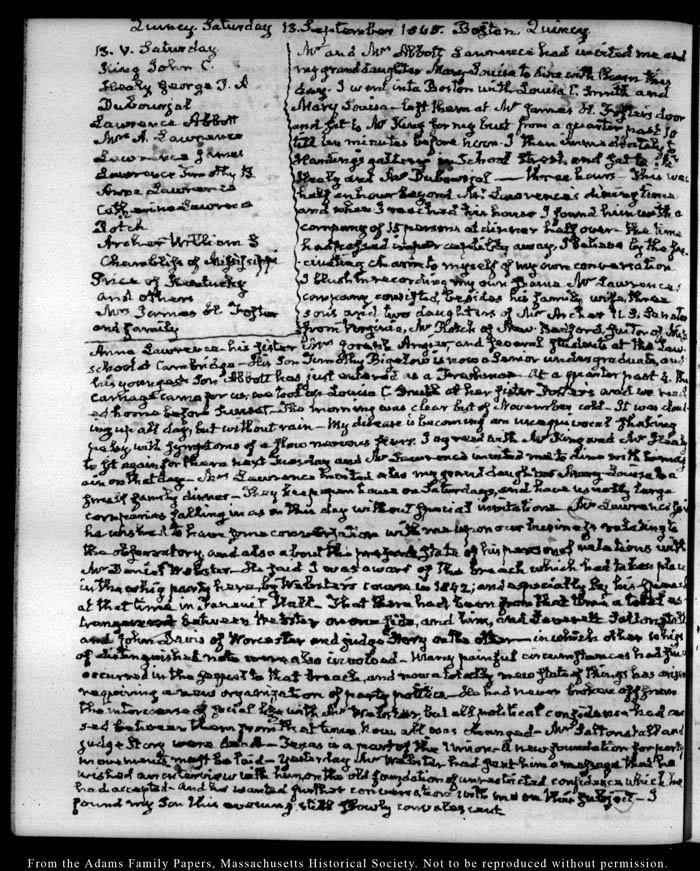 View full, authoritative transcriptions with page images of the diaries at John Quincy Adams Digital Diary part of the Primary Source Cooperative at the MHS.