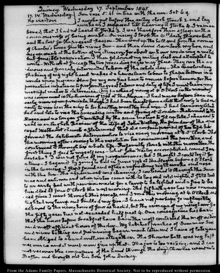 View full, authoritative transcriptions with page images of the diaries at John Quincy Adams Digital Diary part of the Primary Source Cooperative at the MHS.