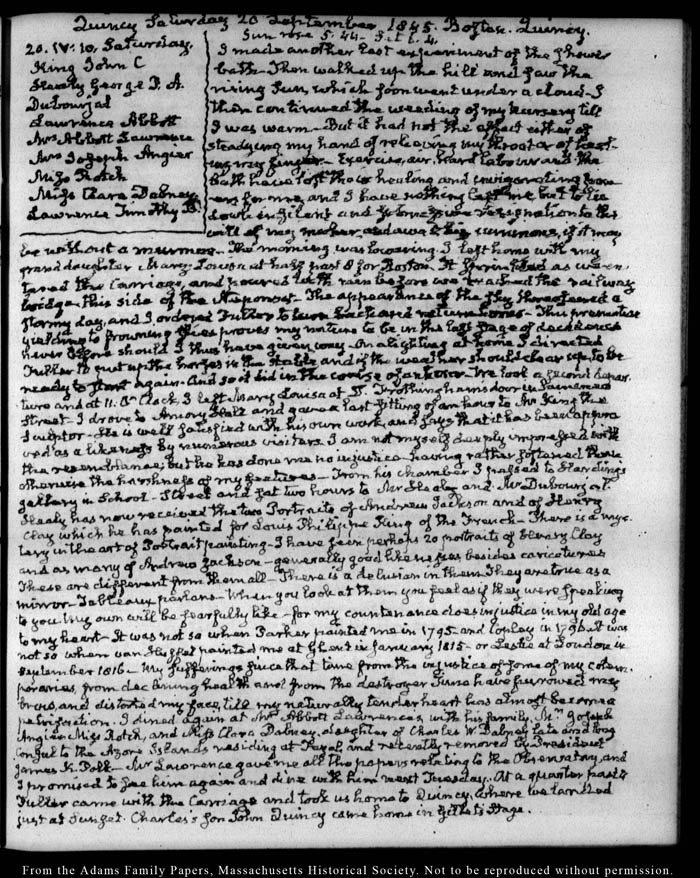 View full, authoritative transcriptions with page images of the diaries at John Quincy Adams Digital Diary part of the Primary Source Cooperative at the MHS.