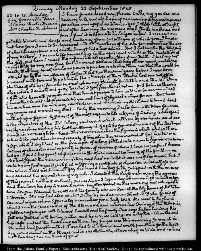 View full, authoritative transcriptions with page images of the diaries at John Quincy Adams Digital Diary part of the Primary Source Cooperative at the MHS.
