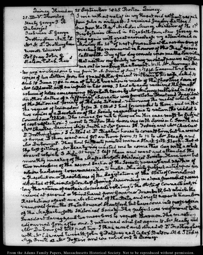 View full, authoritative transcriptions with page images of the diaries at John Quincy Adams Digital Diary part of the Primary Source Cooperative at the MHS.