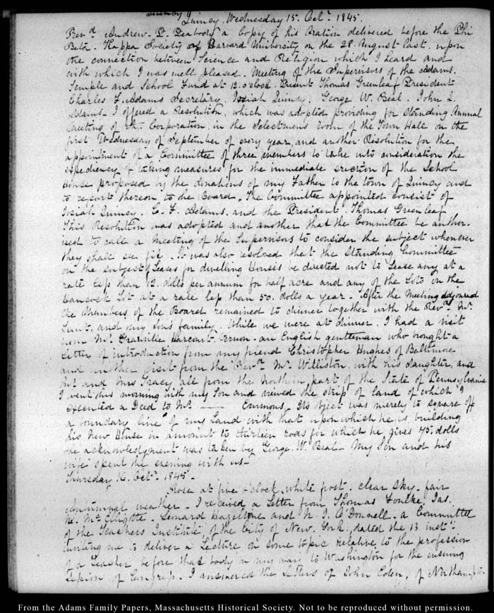 View full, authoritative transcriptions with page images of the diaries at John Quincy Adams Digital Diary part of the Primary Source Cooperative at the MHS.