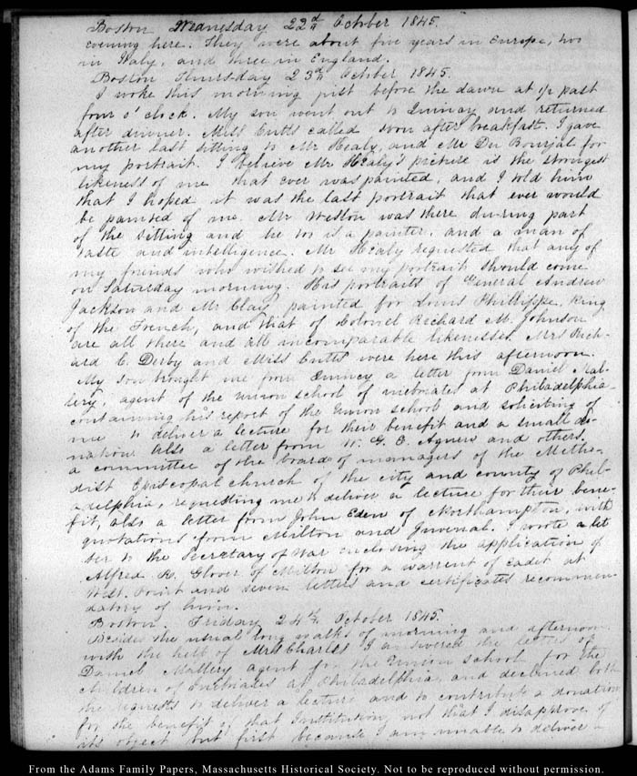 View full, authoritative transcriptions with page images of the diaries at John Quincy Adams Digital Diary part of the Primary Source Cooperative at the MHS.