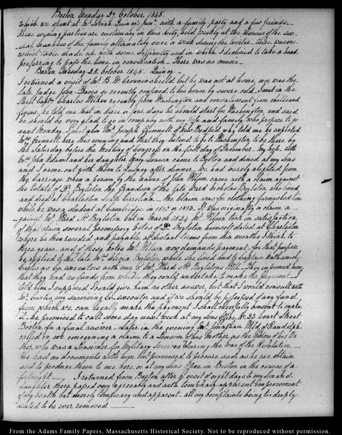View full, authoritative transcriptions with page images of the diaries at John Quincy Adams Digital Diary part of the Primary Source Cooperative at the MHS.