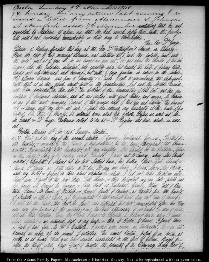 View full, authoritative transcriptions with page images of the diaries at John Quincy Adams Digital Diary part of the Primary Source Cooperative at the MHS.
