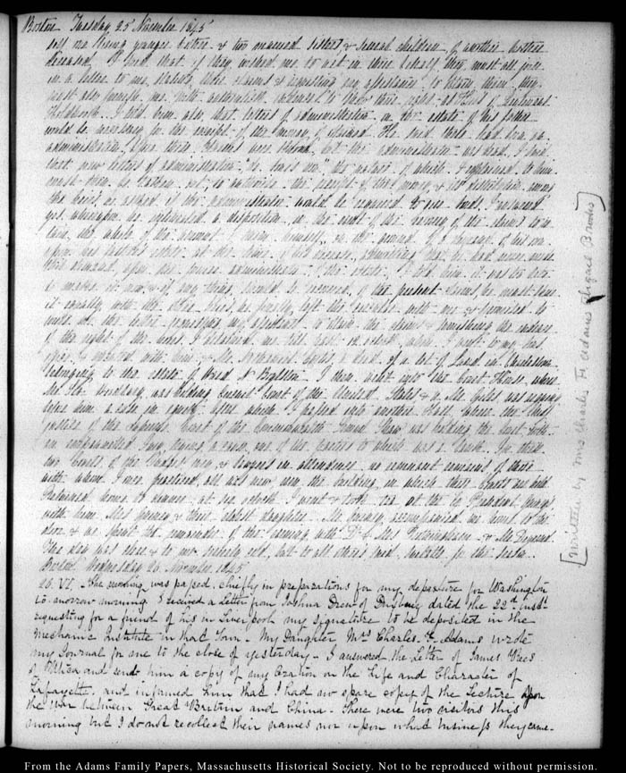 View full, authoritative transcriptions with page images of the diaries at John Quincy Adams Digital Diary part of the Primary Source Cooperative at the MHS.
