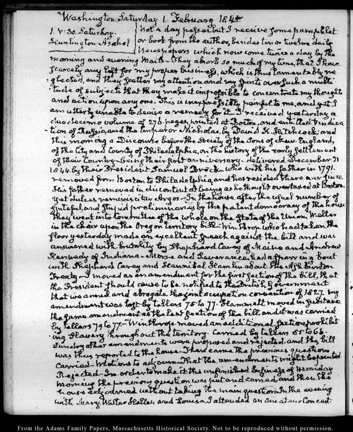 View full, authoritative transcriptions with page images of the diaries at John Quincy Adams Digital Diary part of the Primary Source Cooperative at the MHS.