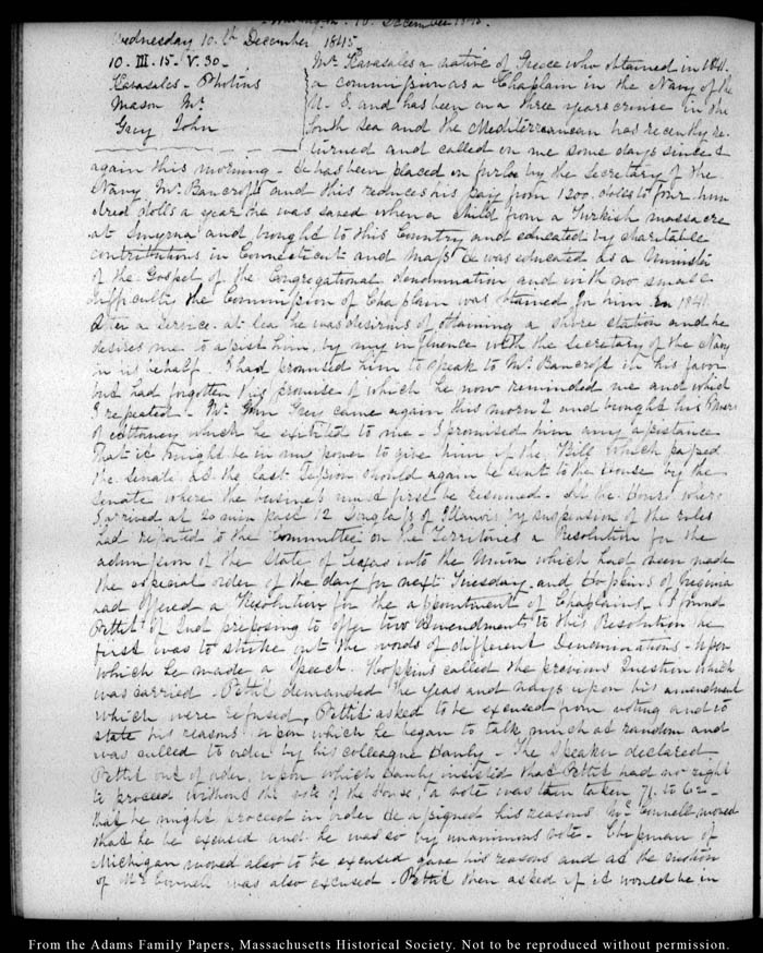 View full, authoritative transcriptions with page images of the diaries at John Quincy Adams Digital Diary part of the Primary Source Cooperative at the MHS.