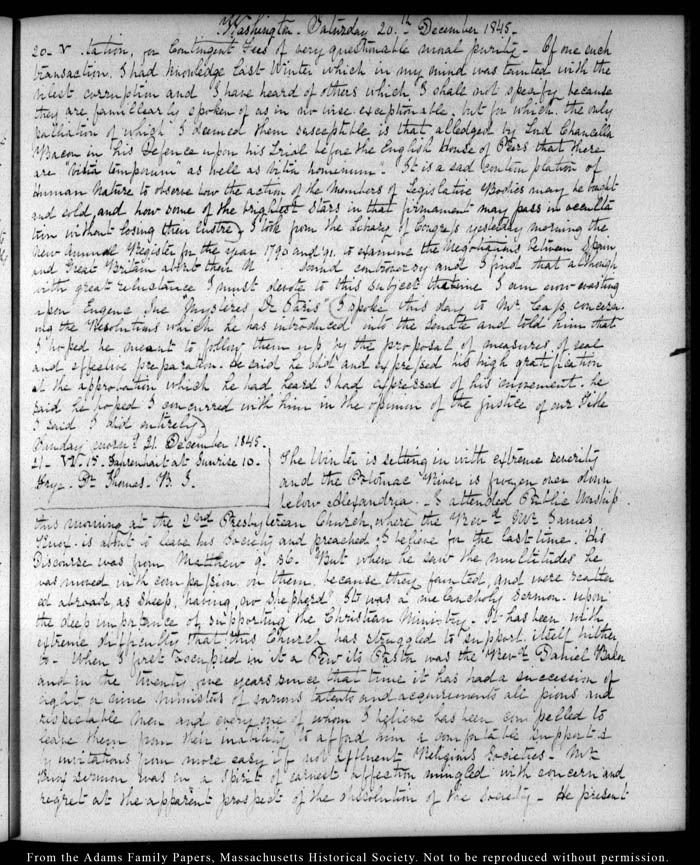 Washington. Saturday 20th. - December 1845