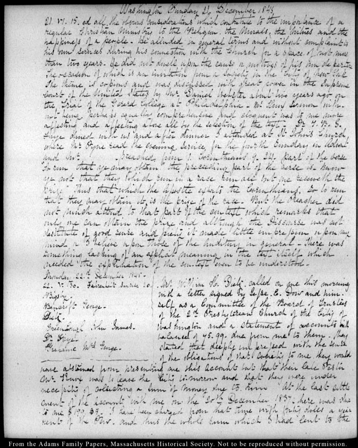 View full, authoritative transcriptions with page images of the diaries at John Quincy Adams Digital Diary part of the Primary Source Cooperative at the MHS.