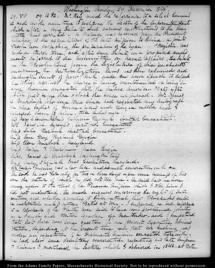 View full, authoritative transcriptions with page images of the diaries at John Quincy Adams Digital Diary part of the Primary Source Cooperative at the MHS.