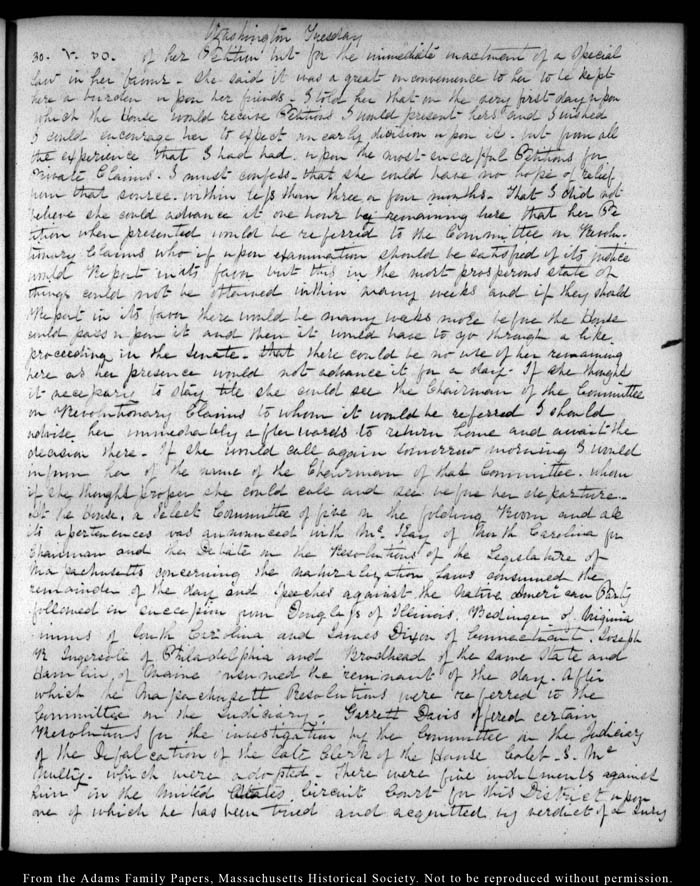 View full, authoritative transcriptions with page images of the diaries at John Quincy Adams Digital Diary part of the Primary Source Cooperative at the MHS.