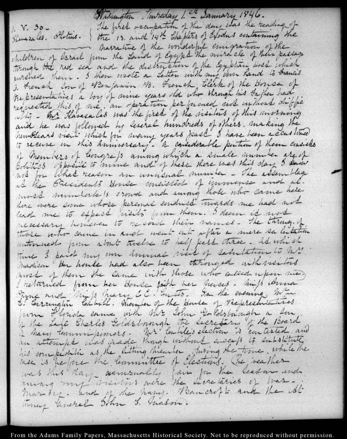 View full, authoritative transcriptions with page images of the diaries at John Quincy Adams Digital Diary part of the Primary Source Cooperative at the MHS.
