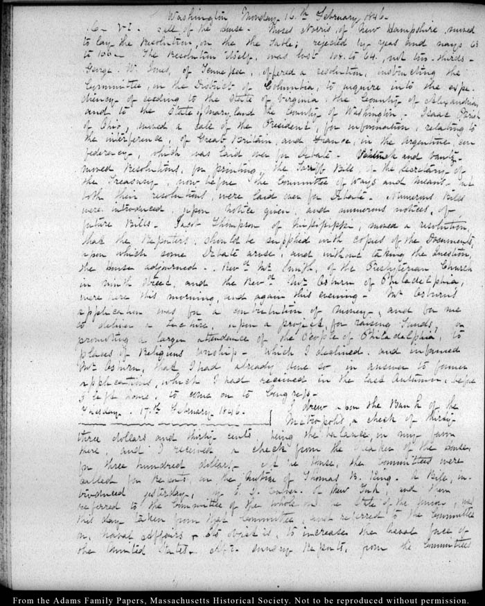 View full, authoritative transcriptions with page images of the diaries at John Quincy Adams Digital Diary part of the Primary Source Cooperative at the MHS.