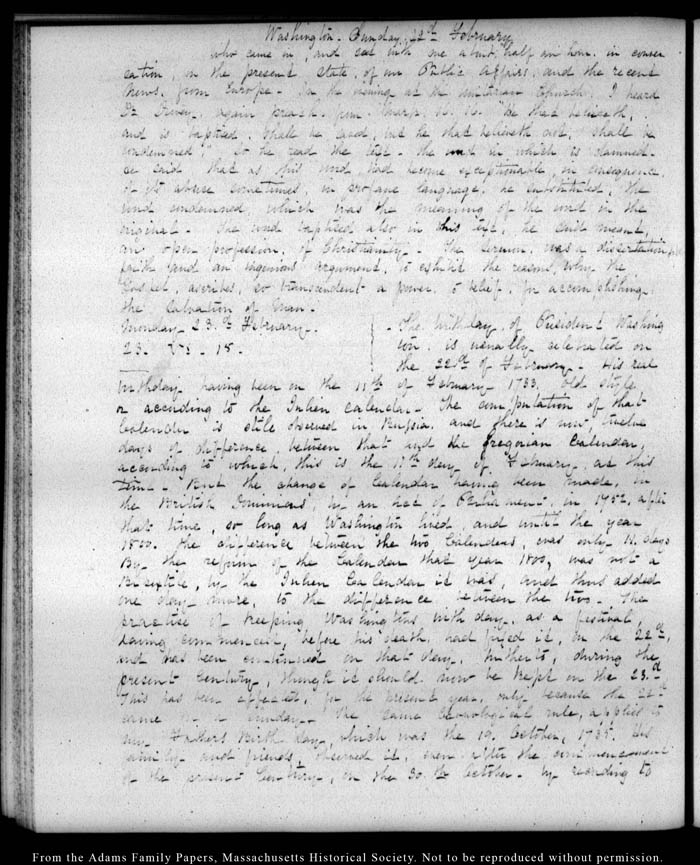 View full, authoritative transcriptions with page images of the diaries at John Quincy Adams Digital Diary part of the Primary Source Cooperative at the MHS.
