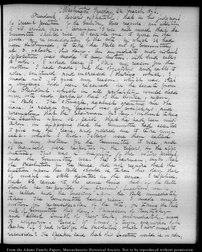 View full, authoritative transcriptions with page images of the diaries at John Quincy Adams Digital Diary part of the Primary Source Cooperative at the MHS.