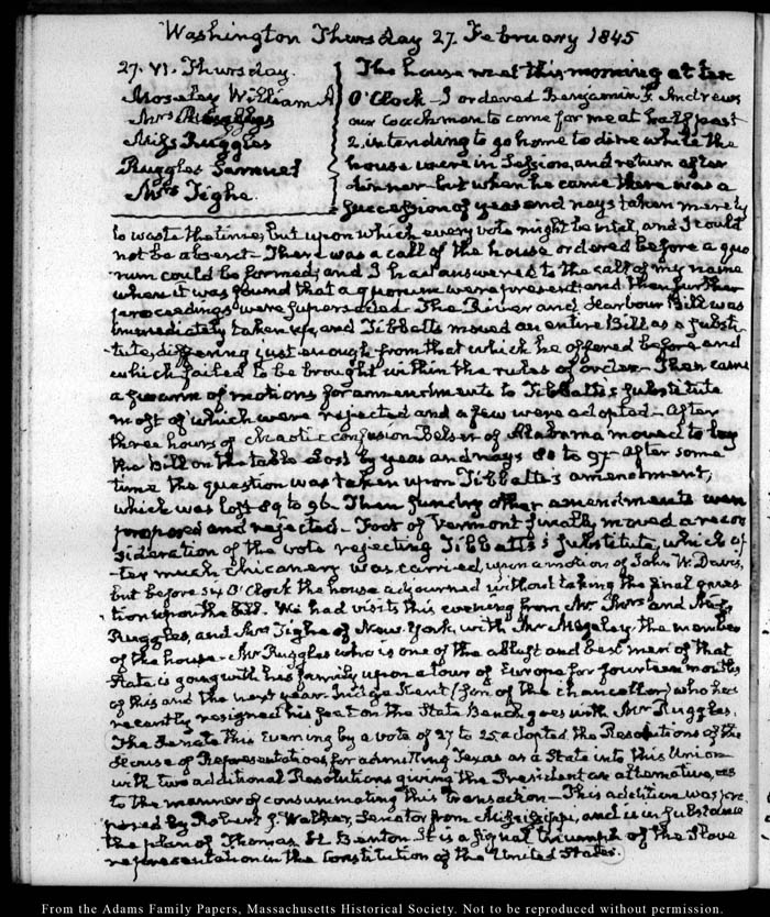 View full, authoritative transcriptions with page images of the diaries at John Quincy Adams Digital Diary part of the Primary Source Cooperative at the MHS.