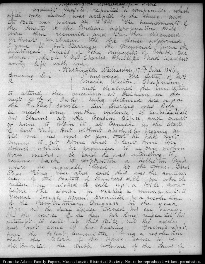 View full, authoritative transcriptions with page images of the diaries at John Quincy Adams Digital Diary part of the Primary Source Cooperative at the MHS.