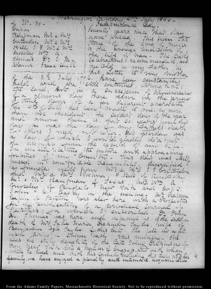 View full, authoritative transcriptions with page images of the diaries at John Quincy Adams Digital Diary part of the Primary Source Cooperative at the MHS.