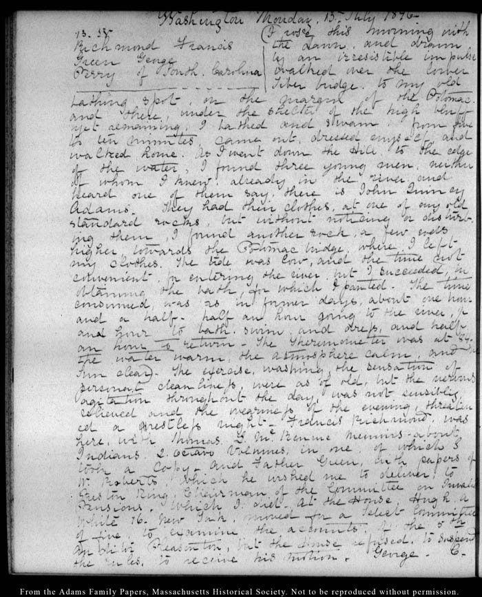 View full, authoritative transcriptions with page images of the diaries at John Quincy Adams Digital Diary part of the Primary Source Cooperative at the MHS.