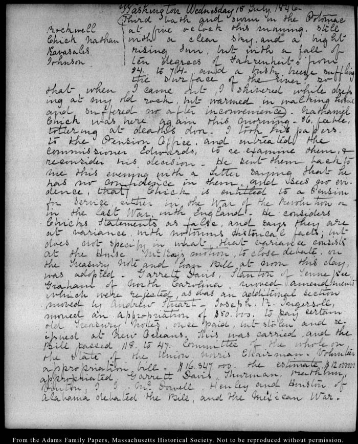 View full, authoritative transcriptions with page images of the diaries at John Quincy Adams Digital Diary part of the Primary Source Cooperative at the MHS.