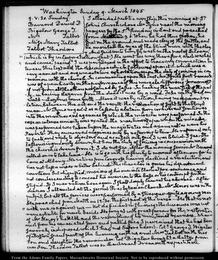 View full, authoritative transcriptions with page images of the diaries at John Quincy Adams Digital Diary part of the Primary Source Cooperative at the MHS.