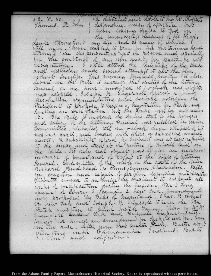View full, authoritative transcriptions with page images of the diaries at John Quincy Adams Digital Diary part of the Primary Source Cooperative at the MHS.