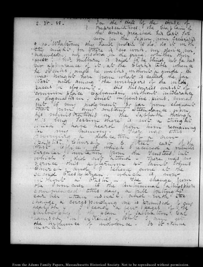 View full, authoritative transcriptions with page images of the diaries at John Quincy Adams Digital Diary part of the Primary Source Cooperative at the MHS.