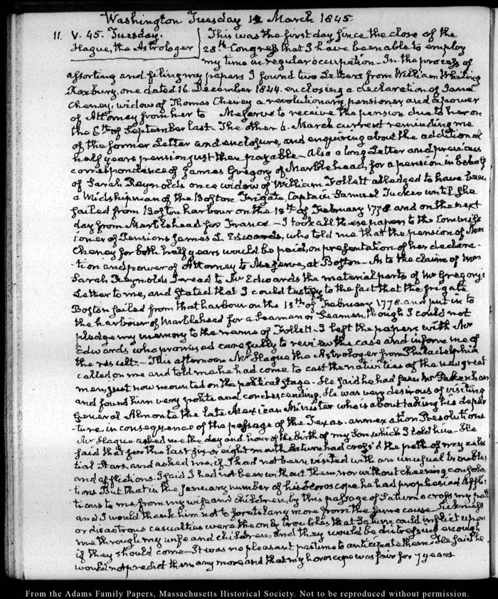 View full, authoritative transcriptions with page images of the diaries at John Quincy Adams Digital Diary part of the Primary Source Cooperative at the MHS.