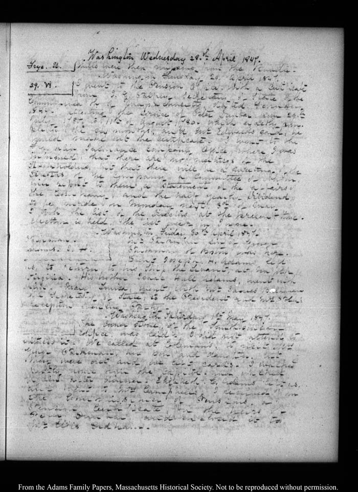 View full, authoritative transcriptions with page images of the diaries at John Quincy Adams Digital Diary part of the Primary Source Cooperative at the MHS.