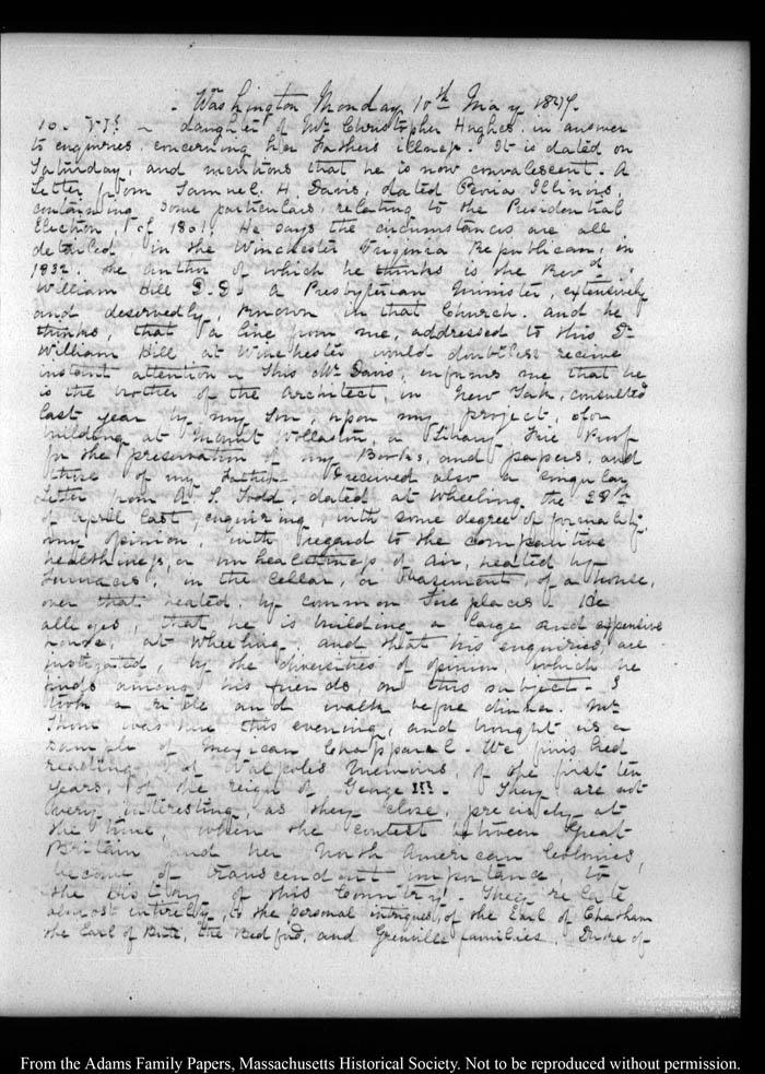 View full, authoritative transcriptions with page images of the diaries at John Quincy Adams Digital Diary part of the Primary Source Cooperative at the MHS.