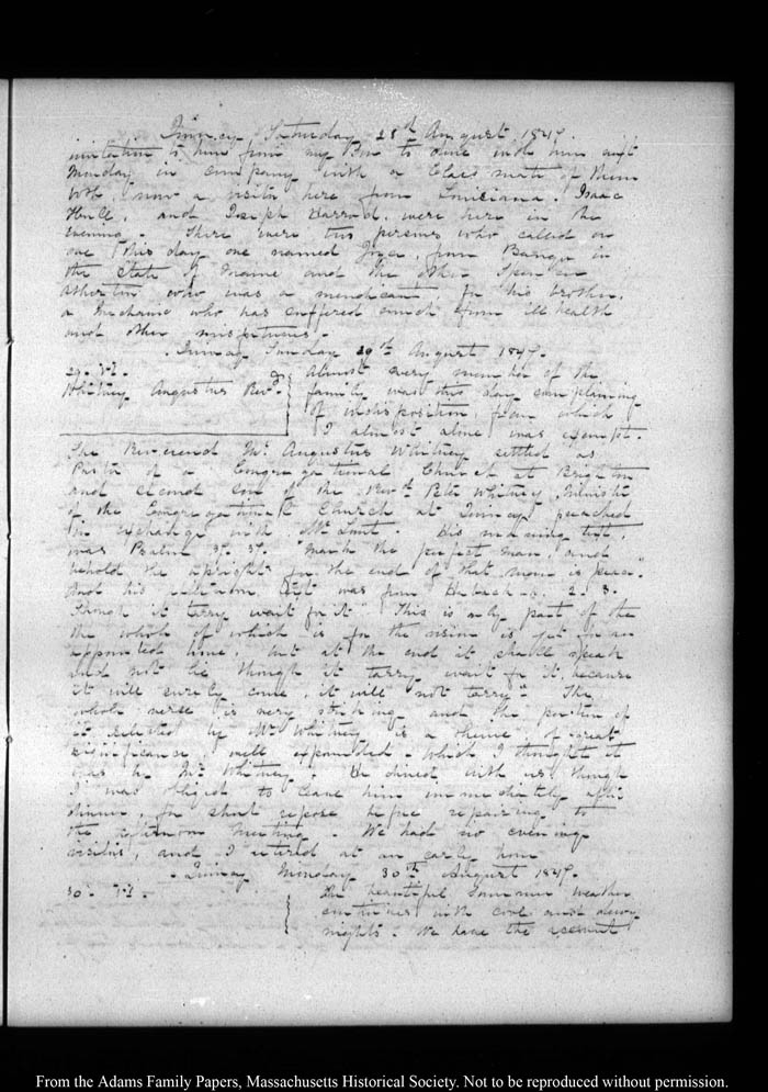 Quincy Monday 30th August 1847